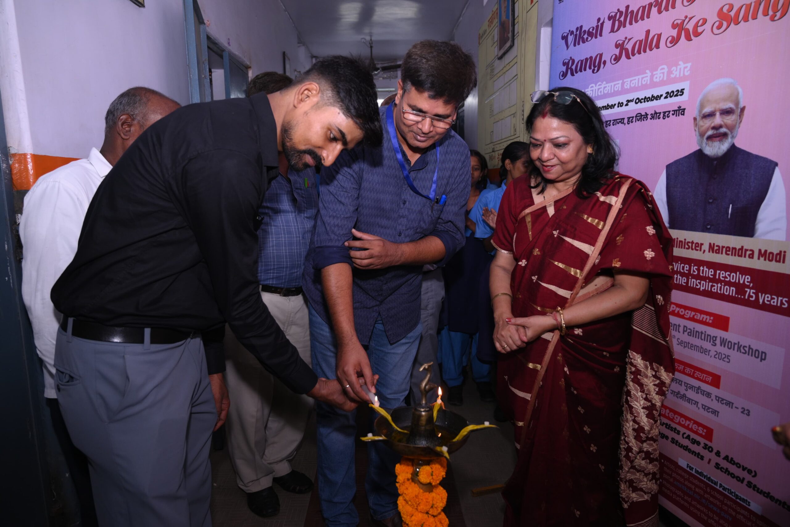 पटना: 21 सितंबर 2025 :: राष्ट्रीय ललित कला अकादमी की ओर से आज पटना स्थित बालक मध्य विद्यालय में आयोजित कला कार्यशाला में सौ से अधिक बाल प्रतिभाओं ने अपनी भागीदारी दर्ज कराई। यह आयोजन देशभर में चल रहे “विकसित भारत के रंग, कला के संग” कैम्पेन का हिस्सा था।