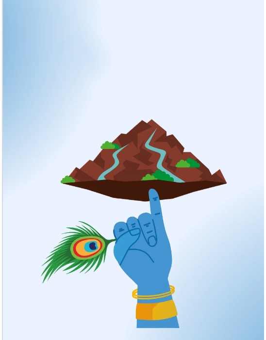 प्रकृति ही पालनकर्ता माता है, और उसका संरक्षण ही सच्ची पूजा है। भागवत पुराण और विष्णु पुराण के अनुसार, जब ब्रजवासी इन्द्र की पूजा किया करते थे, तब बालकृष्ण ने उन्हें प्रकृति स्वरूप गोवर्धन पर्वत की पूजा का उपदेश दिया। उन्होंने कहा — “हमारा जीवन पालन इन्द्र की वर्षा से नहीं, बल्कि गोवर्धन पर्वत, गौओं और प्रकृति से होता है।” इस प्रकार उन्होंने समाज को देवपूजा से प्रकृतिपूजा की दिशा में प्रवृत्त किया। जब इन्द्र क्रोधित होकर मूसलाधार वर्षा करने लगे, तब श्रीकृष्ण ने अपनी कनिष्ठा अंगुली पर गोवर्धन पर्वत उठाकर ब्रजवासियों की रक्षा की। यह घटना प्रतीक है — “जब मनुष्य प्रकृति की रक्षा करता है, तब प्रकृति स्वयं उसकी रक्षा करती है।”