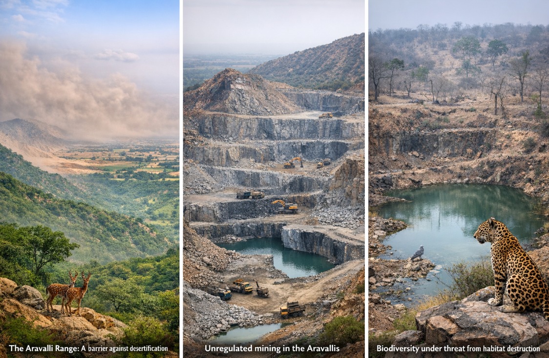The Aravalli Crossroads: Navigating Environmental Risks, Economic Opportunities and Systemic ChallengesBy Dr Shailendra kumar Pandey The Aravalli Range, one of the world’s oldest mountain systems, extends across Rajasthan, Haryana, Gujarat, and parts of Delhi. It plays a crucial role as an ecological shield, preventing the eastward spread of the Thar Desert, supporting groundwater recharge, moderating local weather patterns, and maintaining biodiversity. Geologically rich, the range contains over 70 mineral types—including copper, zinc, lead, silver, tungsten, marble, granite, quartzite, mica, feldspar, graphite, and rare earth elements—many of which are commercially extracted to drive construction, industrial supply chains, renewable energy technologies, and defense applications.The ongoing Supreme Court proceedings highlight the delicate balance required between resource development and conservation. On November 20, 2025, the Court accepted a committee-recommended uniform definition for Aravalli Hills and Ranges in the mining context: hills as landforms with an elevation of 100 meters or more above local relief (measured from the lowest encircling contour, including supporting slopes and associated features), and ranges as clusters of such hills within 500 meters of each other. This elevation-focused criterion sought to resolve longstanding inconsistencies across states and potentially restrict strict protections to higher features, while mandating a Management Plan for Sustainable Mining (MPSM)—prepared under bodies like the Indian Council of Forestry Research and Education (ICFRE)—before approving new leases.The Judicial Backdrop and Its Market Signals The Supreme Court’s recent actions in the Aravalli mining matter—rooted in long-running environmental petitions such as M.C. Mehta v. Union of India and T.N. Godavarman Thirumalpad v. Union of India—have created significant regulatory uncertainty for the sector. The Court’s November 2025 ruling introduced a new “100-meter above local relief” test to define Aravalli hills, potentially removing nearly 90% of low-elevation areas from strict protection and opening them to mining under a Management Plan for Sustainable Mining prepared by the Indian Council of Forestry Research and Education.However, the subsequent stay orders in December 2025 and January 2026 have imposed an interim freeze on new mining leases and renewals while an expert committee re-examines the definition. Market reactions reflect this volatility: companies linked to Rajasthan’s marble and granite belts have seen fluctuating valuations, with some analysts issuing downgrades due to expected delays in approvals. If the Court ultimately mandates stronger sustainability norms—such as stricter reclamation rules and cumulative impact assessments—operational costs for compliant firms could rise by 20–30%. At the same time, tighter oversight may help curb illegal mining networks that currently divert revenues worth tens of thousands of crores annually.Investment Risks and Opportunities in a Volatile Landscape The Supreme Court of India’s ongoing scrutiny of mining in the Aravalli Range—rooted in long-standing environmental litigation—has created a volatile regulatory landscape with significant economic implications. The November 2025 ruling, which applied a “100-meter above local relief” test, potentially removed nearly 90% of low-elevation areas from stringent protection, opening the door to regulated mining under a sustainability framework prepared by the Indian Council of Forestry Research and Education. However, subsequent stay orders have frozen new leases and renewals pending expert review, leading to uncertainty in markets, especially for firms operating in Rajasthan’s marble, granite, and industrial mineral belts. Economically, the Aravallis represent substantial untapped value: industry estimates place potential mineral wealth—including quartzite, mica, feldspar, graphite, and rare earth elements—at more than ₹40,000 crore. If regulatory conditions ease, Rajasthan’s mining revenues could rise by 15–20% over the medium term, supporting infrastructure and livelihoods for millions tied to the sector.For investors, the situation underscores critical ESG considerations. Companies with poor compliance histories face higher litigation and reputational risk, while those deploying sustainable technologies—such as drone surveillance and eco-restoration—may benefit from valuation premiums. Social impacts remain equally significant: mining generates employment but often displaces vulnerable communities, leading to migration pressures and indirect economic strain. A balanced Management Plan for Sustainable Mining, with strong rehabilitation mandates and community safeguards, could unlock economic value while curbing illegal mining networks and ensuring long-term environmental and social stability.Environmental Concerns: A Fragile Ecosystem under SiegeThe Aravalli Range functions as a vital natural barrier, halting the eastward advance of the Thar Desert, facilitating significant groundwater recharge, moderating local micro-climates, and supporting rich biodiversity. However, decades of illegal mining, deforestation, encroachments, and urban expansion have severely degraded this ancient ecosystem, pushing it toward irreversible tipping points. Key environmental threats include:Desertification and Accelerated Soil Erosion: unregulated quarrying has created numerous gaps and breaches across the range, allowing desert sands to encroach into fertile plains. This has led to widespread soil loss, reduced arable land, and intensified drought in semi-arid areas. Reports indicate that in southern Haryana, dozens of hills have vanished over recent decades due to mining activities, while forest cover in parts of the range has declined significantly. These changes have opened pathways for dust storms to reach the National Capital Region (NC