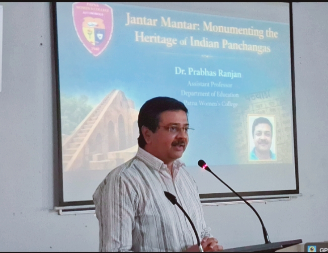 डॉ प्रभास रंजन (सहायक प्राध्यापक, शिक्षा विभाग पटना वीमेंस कॉलेज स्वायत्त ) ने “जंतर मंतर: भारतीय पंचांगों की विरासत का स्मारक” विषय पर एक विशेष व्याख्यान दिया। उन्होंने जंतर मंतर के महत्व और भारतीय पंचांगों की पारंपरिक विरासत में इसकी भूमिका पर प्रकाश डाला।